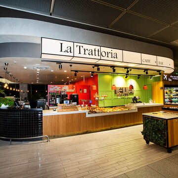 Wenig Zeit, aber Lust auf Genuss? Italienisch genießen in Eile? Bei La Trattoria warten frische Focaccia, Calzone, Panini und Pizzaschleifen – perfekt für den kleinen Hunger vor dem Abflug.